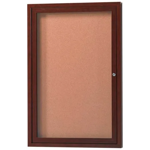 Aarco 1 Door Aluminum Frame Wood Look, Walnut Enclosed Bulletin Board - 36"W x 48"H