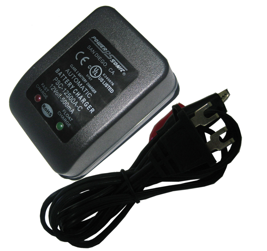 Power-Sonic PSC-12500A-C 12V 500 mA C-Series Sealed Lead Acid Battery Charger - Auto Switch Mode - Plug-in Design
