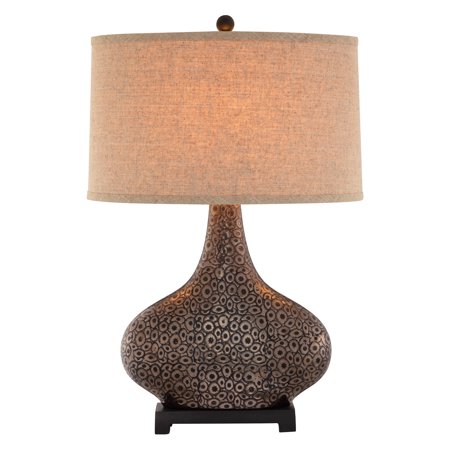 <p>The ceramic gourd-shaped <strong>Catalina Lighting 19089-001 3-Way Switch Table Lamp</strong> features an embossed bronze finish with gold highlights. It's topped by a beige fabric drum shade and coordinating ball finial. This table lamp requires one 3-way, 150-watt incandescent bulb, 3-way E26 CFL spiral bulb, or included LED bulb.</p>