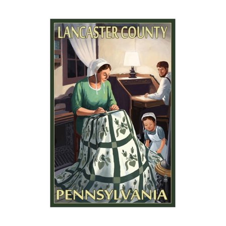 <ul> <li>Title: Lancaster County, Pennsylvania - Amish Quilting Scene</li> <li>Artist: Lantern Press</li> <li>Product Type: Art Print</li> </ul>