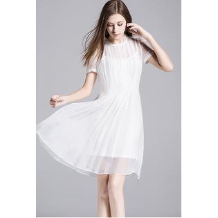 Style : A-Line| Occasion : Party / Special Occasion | Sleeve Style : Short Sleeves| Neck : High Neck | Color : White| Dress Length : Knee Length | Pattern : Solid| Material : Polyester / Chiffon