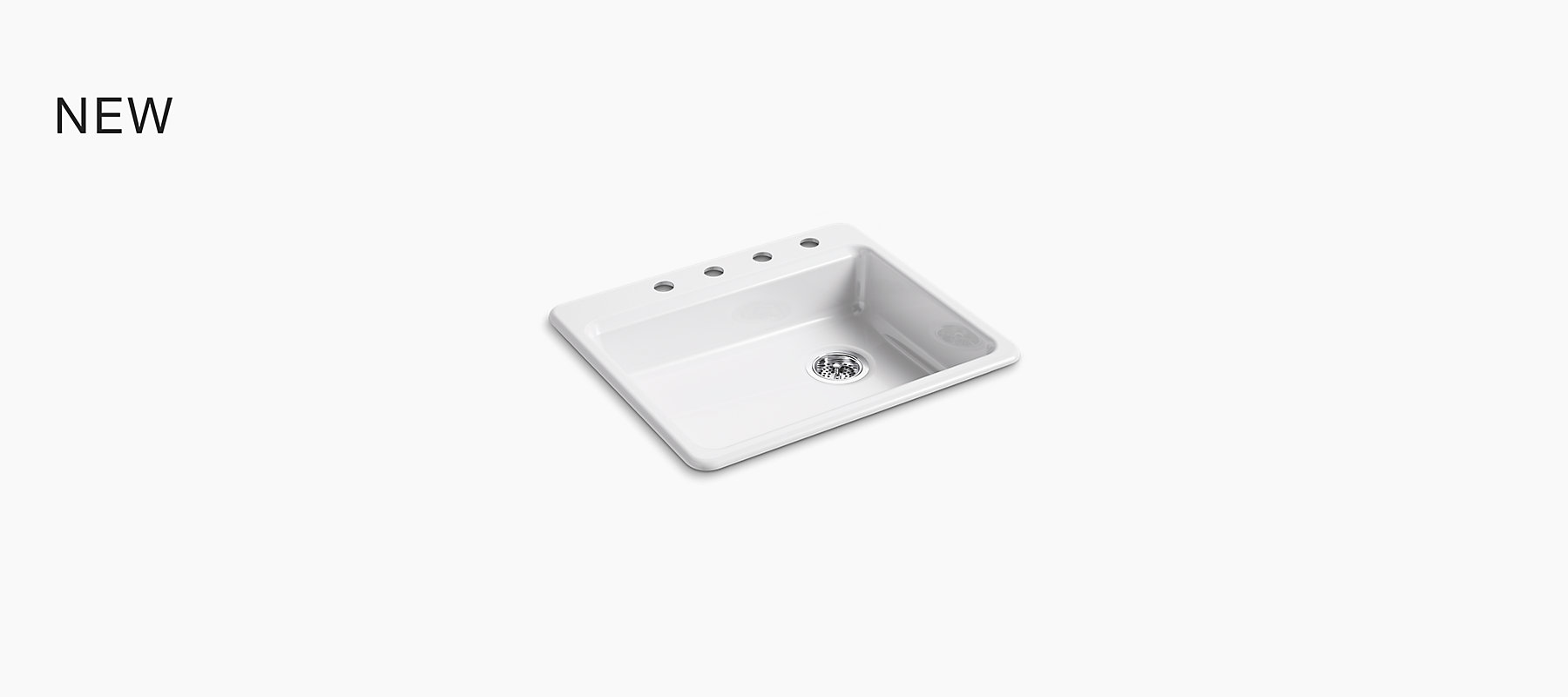 KOHLER K-5479-4-7 RIVERBY 25 INCH SINGLE BASIN CAST IRON KITCHEN SINK FOR DROP IN INSTALLATIONS, BLACK BLACK