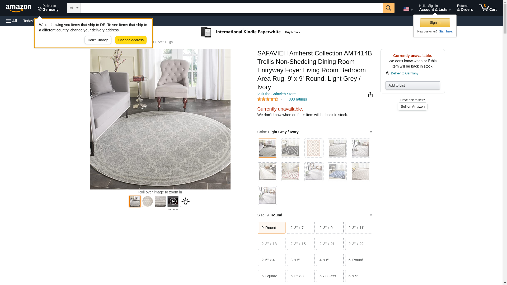 SAFAVIEH Amherst Collection 9' Round Light Grey/Ivory AMT414B Trellis Non-Shedding Dining Room Entryway Foyer Living Room Bedroom Area Rug