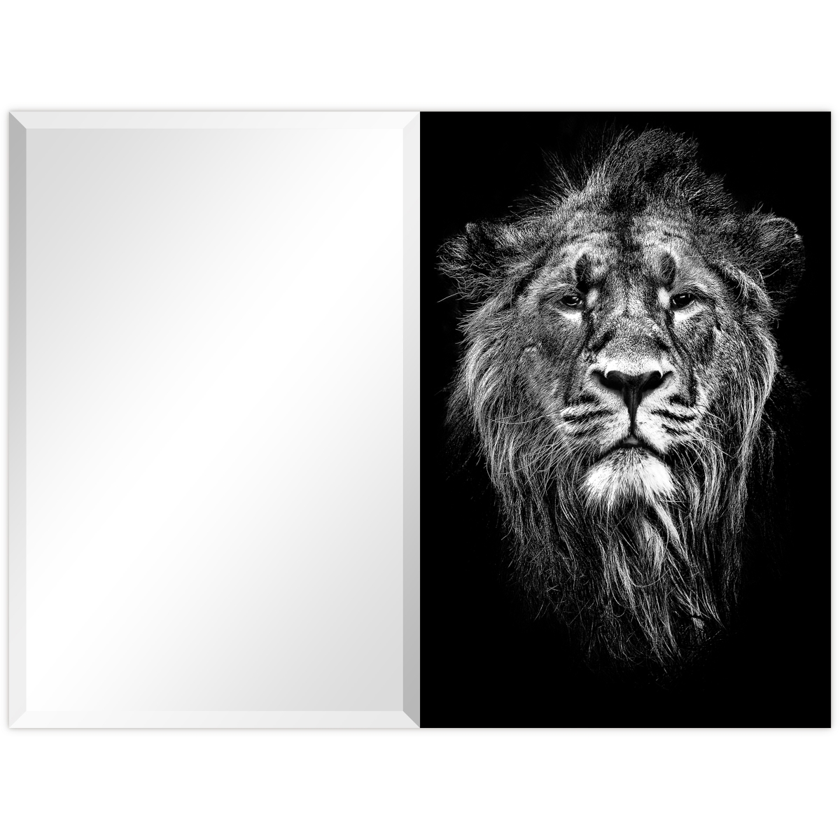 Empire Art Direct TAM-EAD1182-3648R Lion Rectangular Beveled Mirror on Free Floating Printed Tempered Art Glass