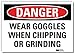 Smartsign U3-2060-RD_10X7"DANGER WEAR GOGGLES WHEN CHIPPING OR GRINDING" Reflective Self-Adhesive Decal, 10" x 7"