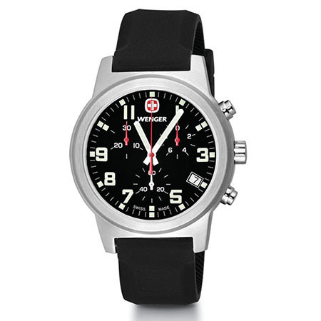 Wenger Field Chrono Large Swiss Quartz Men's Watch, Silicone Strap, Black