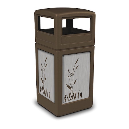Precision Series 42 Gallon Waste Containers with Dome Lid and Stainless Steel Panels Cattails Design Color: Brown