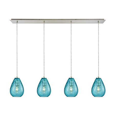 Lagoon 4-Light Linear Pan in Satin Nickel with Aqua Water Glass Pendant
