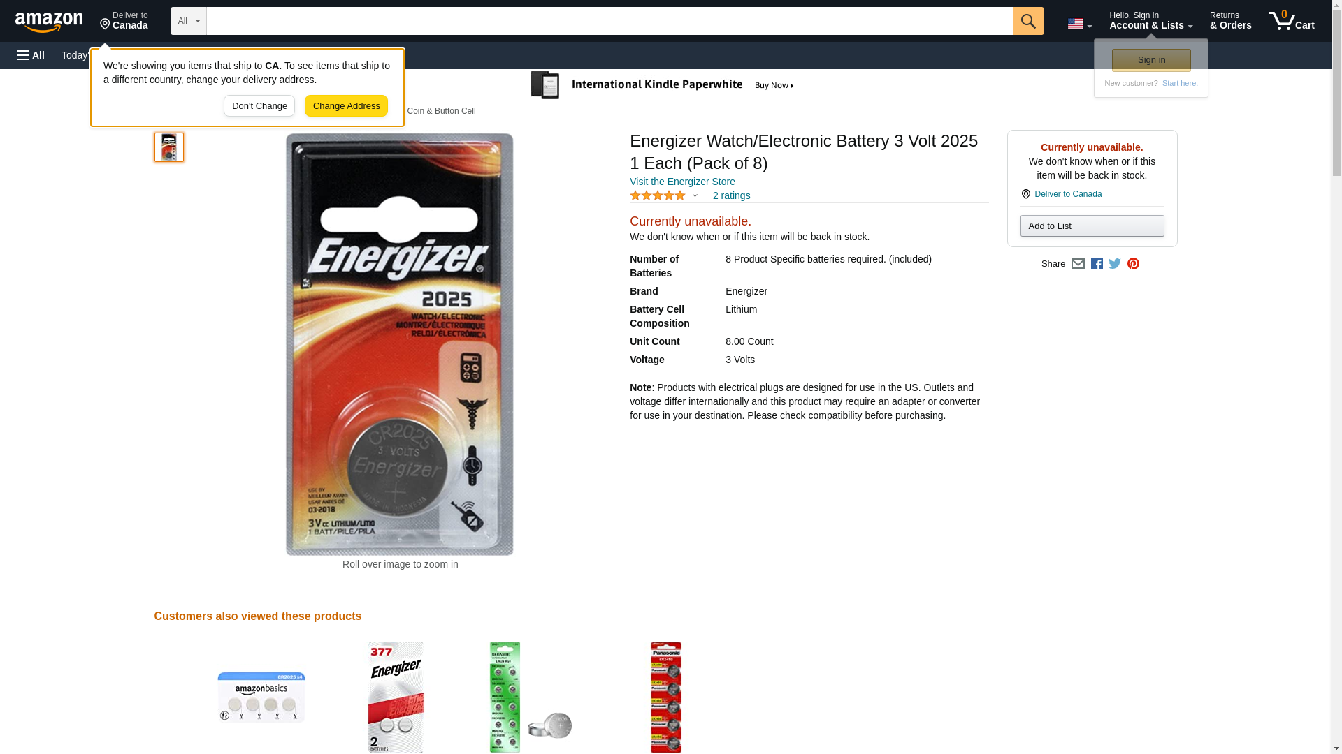 Energizer Watch/Electronic Battery 3 Volt 2025 1 Each (Pack of 8)