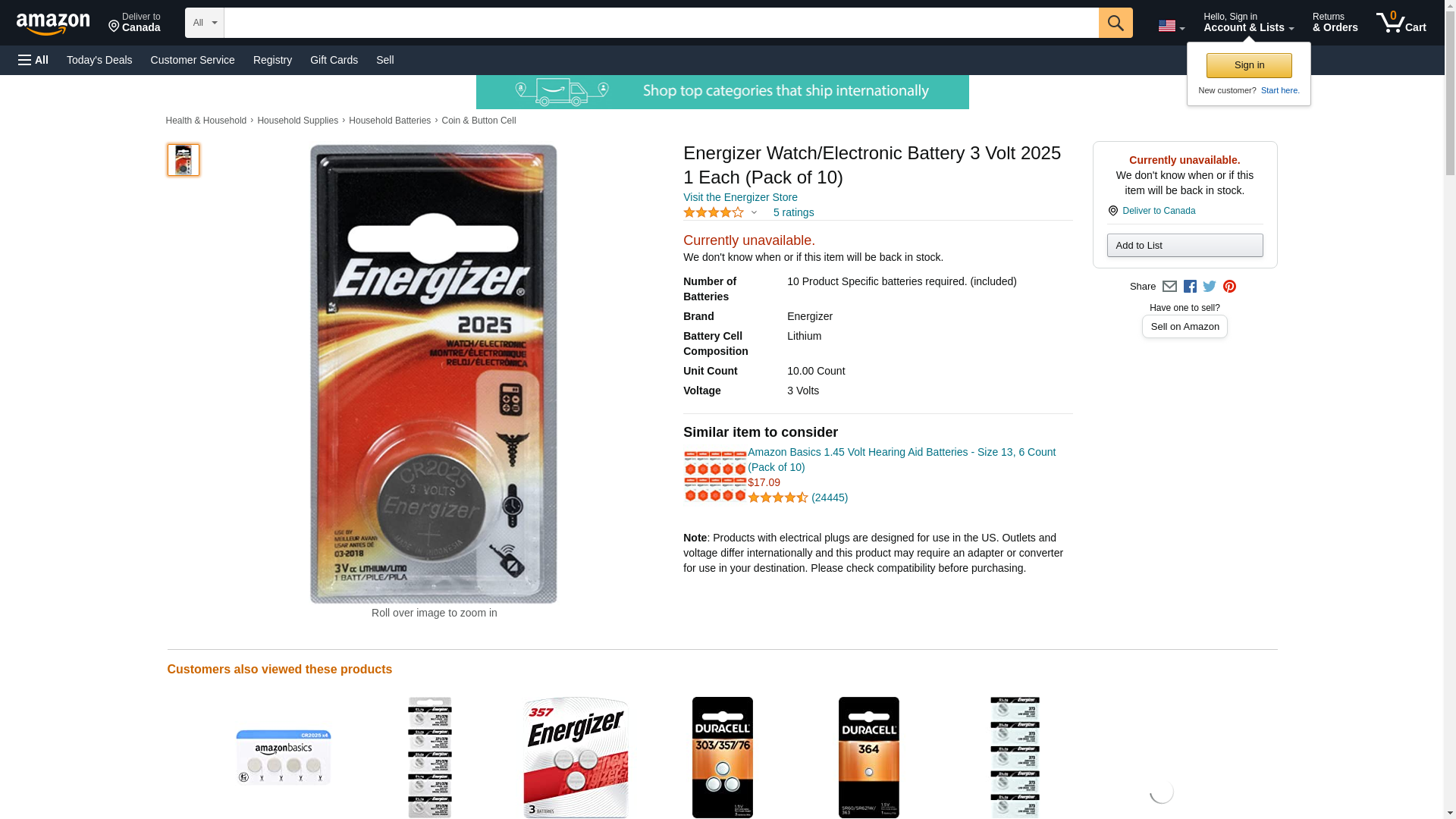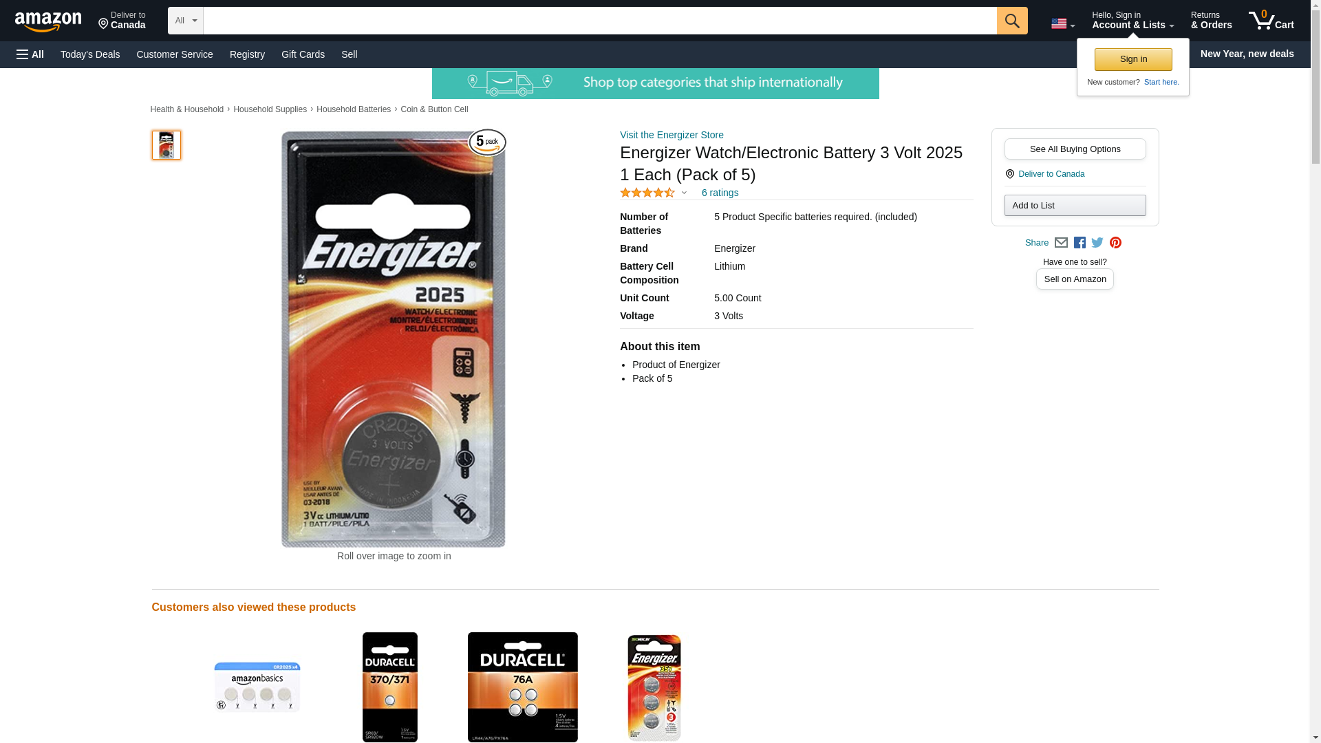 Energizer Watch/Electronic Battery 3 Volt 2025 1 Each (Pack of 5)