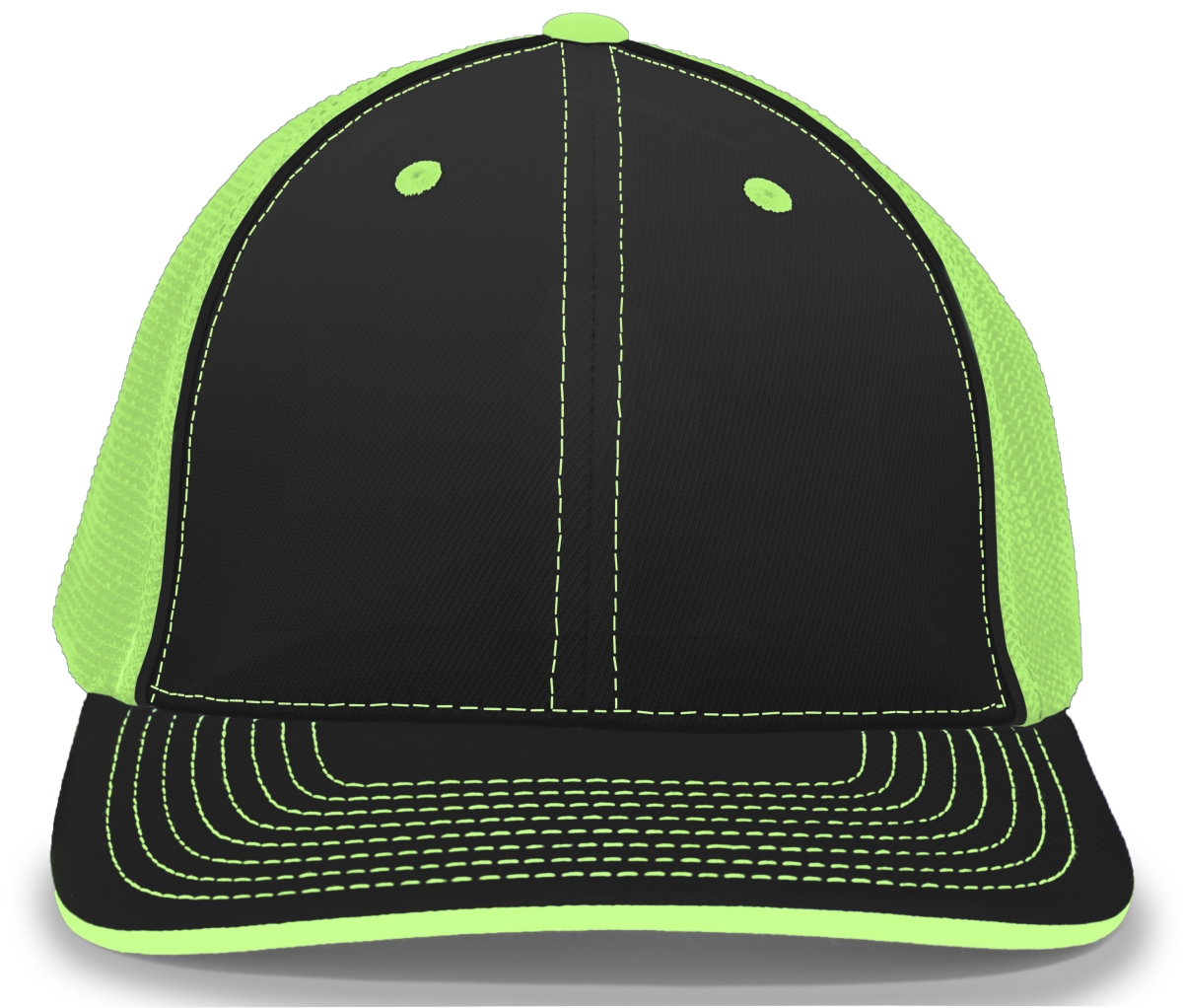 Pacific Headwear 404M.92M.S-M Trucker Flexfit Cap, Black & Neon Green - Small & Medium