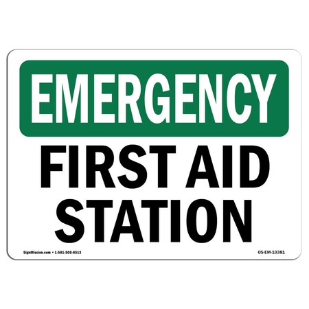 OSHA EMERGENCY Sign, First Aid Station, 18in X 12in Aluminum