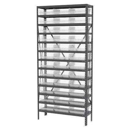Akro-Mils AS1279170SC Steel Shelving Kit with 36 Bins, Gray/Clear, 12" x 36" x 79"