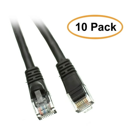 C&E 10 Pack, Cat5e Ethernet Patch Cable, Snagless/Molded Boot, 3-Feet, Black (CNE506864)