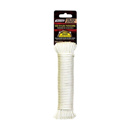 Highlights:? Color : White Military grade Braided nylon Size : 5/32" x 50' 550 lb max load 110 lb safe working load limit Great for shelter building, hunting and shoelaces Abrasion and mildew resistant Ties easily and securely Peggable