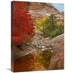 Global Gallery GCS-452078-1824-142 18 x 24 in. Maple & Cottonwood Autumn Foliage, Zion National Park, Utah Art P