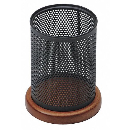 Rolodex™ - Distinctions Metal and Wood Pencil Cup, 3 1/2 dia. x 4 1/2, Black/Cherry