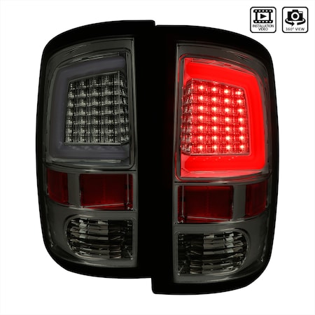 Spec-D Tuning LED Light Bar Chrome Housing Smoke Lens Tail Lights Compatible with 2009-2018 Dodge Ram 1500, Left + Right Pair Assembly