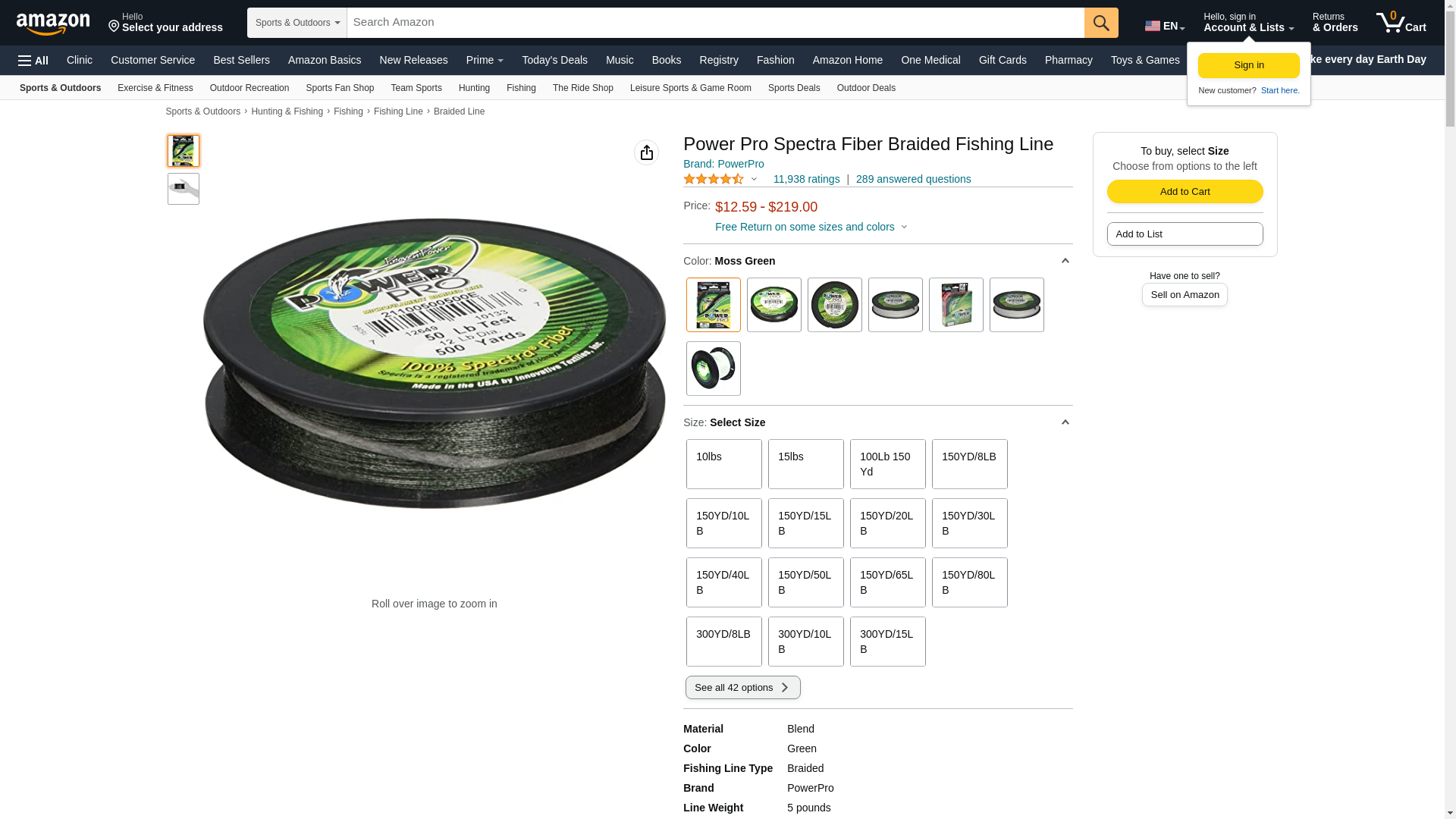 POWERPRO Spectra Fiber Braided Fishing Line, Moss Green, 500YD/30LB