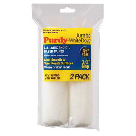 Highlights: White dove For all paints 3/4" jumbo core 6-1/2" x 1/2" nap Woven Dralon fabric Very smooth to smooth surfaces Pick up and release more paint than a standard mini roller Use with roller frames Catalog Id 42803784?and?42803795 Number in Package: 2 pk