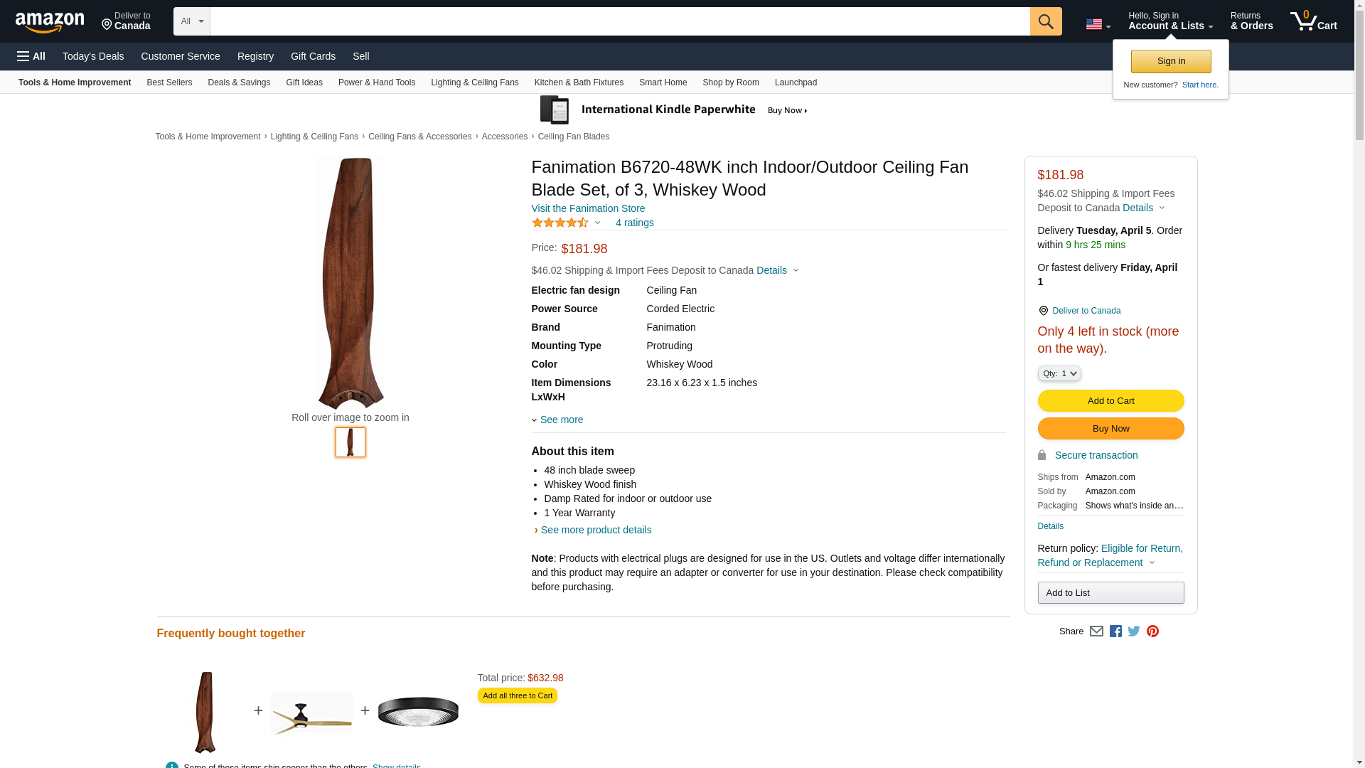 Fanimation B6720-48WK inch Indoor/Outdoor Ceiling Fan Blade Set, of 3, Whiskey Wood