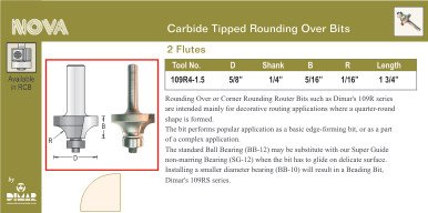 Dimar 109R4-1.5 5/8 In Rounding Over Bit With 1/2 In Ball Bearing 2 Flutes 1/4 In Shank 1 3/4 In Length