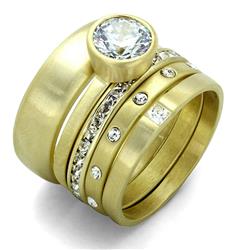 Alamode LO3645-11 Women Gold & Brush Brass Ring with AAA Grade CZ in Clear - Size 11