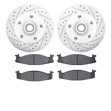 Dynamic Friction Company Front Brake Rotors Drilled and Slotted Silver with Ultimate Duty Performance Brake Pads - 7402-54022