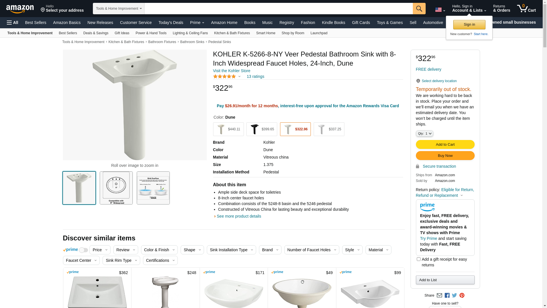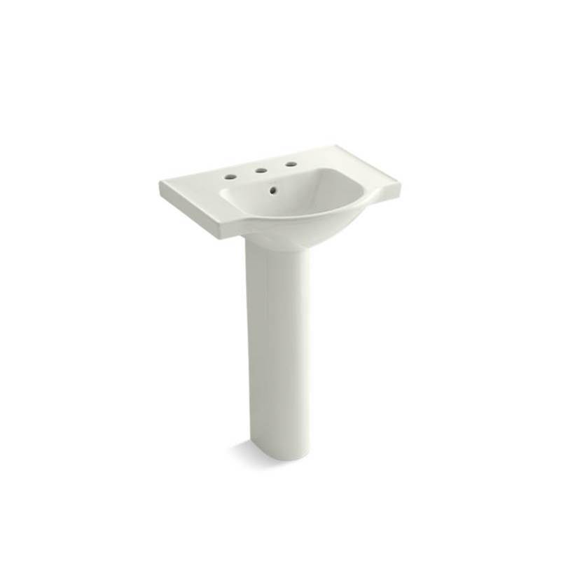 KOHLER K-5266-8-NY Veer Pedestal Bathroom Sink with 8-Inch Widespread Faucet Holes, 24-Inch, Dune