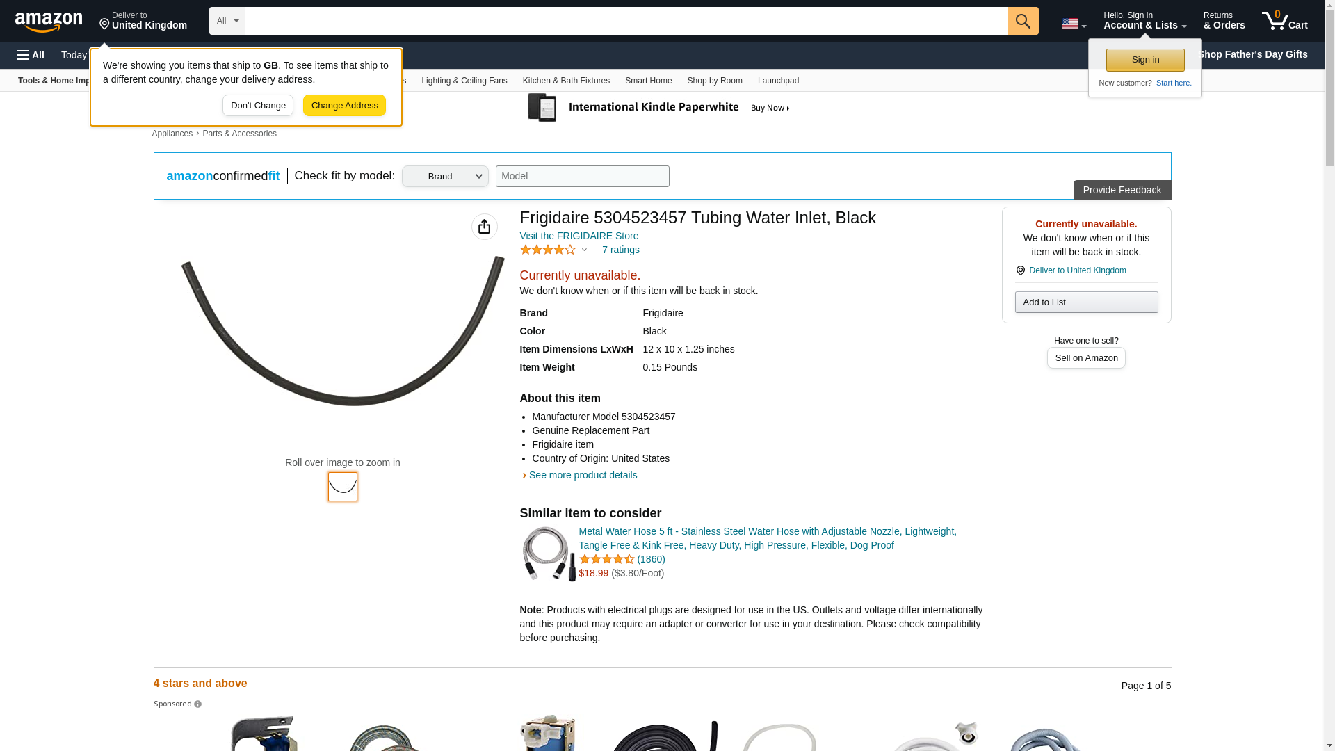Frigidaire 5304523457 Tubing Water Inlet, Black