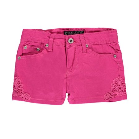 She'll love the stylish crocheted accents of these Star Ride shorts! Star Ride short shorts Cotton twill construction 5-pocket design Logo hardware Crocheted trim at sides Adjustable elastic waistband 55% ramie, 43% cotton, 2% spandex Machine wash cold, inside out Imported