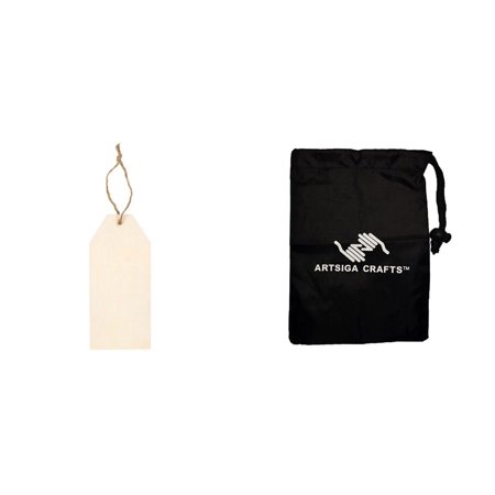 Bundle includes Darice Wood Unfinished Cut-Out Shape Tag Twine Loop 4.375 x 10in. (6 Pack) 9191-0001 and 1 Artsiga Crafts Small Bag. Price includes 6 pack(s) per order, with 1 Set per pack. Artsiga Crafts bag measures approximanetly 6 x 8in., made of heavy nylon material and includes a drawstring closure; this bag is deal to store small craft items or cell phones and accessories.