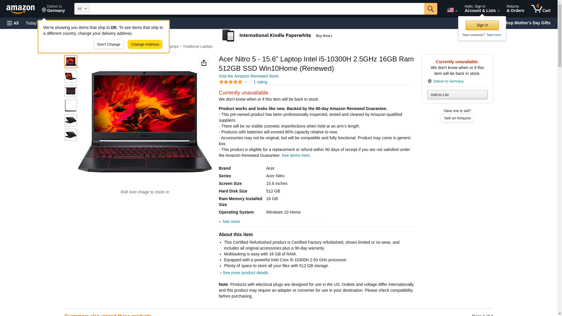 Acer Nitro 5 - 15.6" Laptop Intel i5-10300H 2.5GHz 16GB Ram 512GB SSD Win10Home (Renewed)
