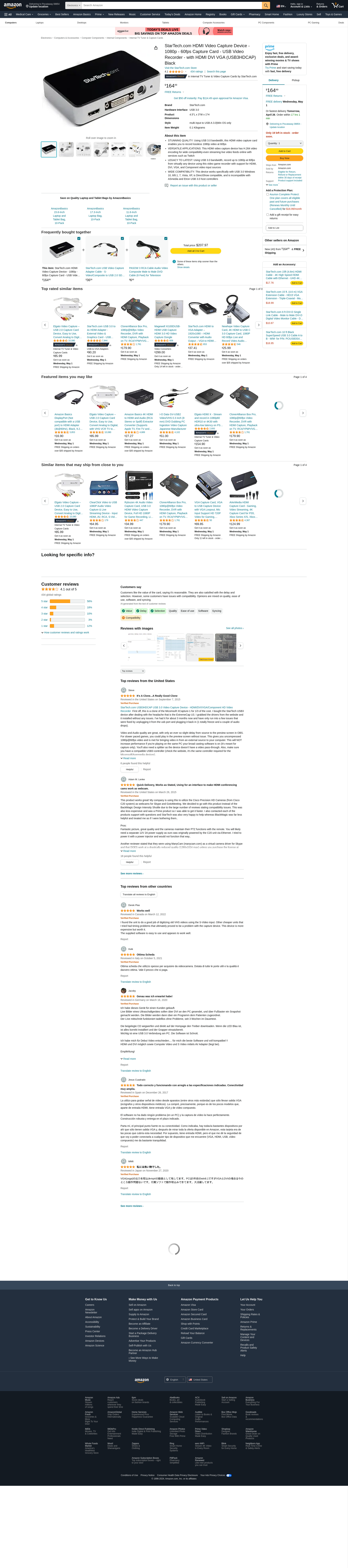 StarTech.com HDMI Video Capture Device - 1080p - 60fps Capture Card - USB Video Recorder - with HDMI DVI VGA (USB3HDCAP) Black