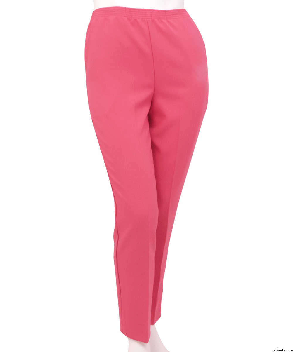 Silverts 131003508 Petite Polyester Pants Elastic Waist Pull on Pants for Mature Women - Two Pocket Pants, Fresh Pin