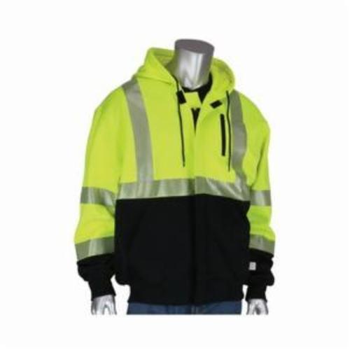 PIP 385-1370FR-LY/2X PIP ANSI Type R Class 3 AR/FR Full Zip Hooded Sweatshirt with Black Bottom, Hi-Viz Yellow, Size 2X-Large