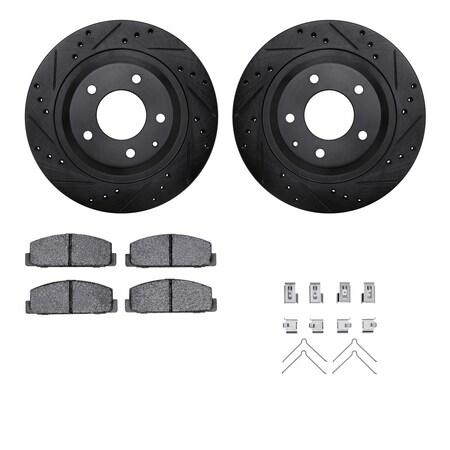 8512-80024, Rotors-Drilled and Slotted-Black w/ 5000 Advanced Brake Pads incl. Hardware, Zinc Coated