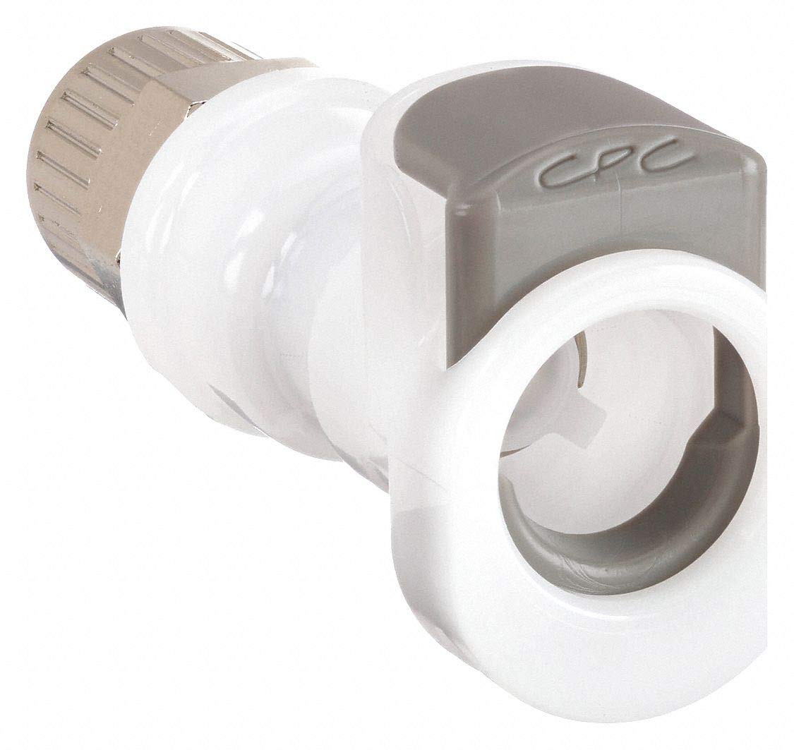 | Feature | Price For: Each Basic Fitting Material: Plastic Series: APC Max. Pressure: 120 psi Tube Fitting Material: Acetal Color: White Coupling Size: 1/4" Standards: NSF 61, NSF 51, FED 209E Temp. Range: -40 Degrees to 180 Degrees F Basic Fitting Shape: Coupling Specific Fitting Shape: Inline Coupler Straight-Through/Shut-Off: Shut-Off Body Dia.: 1.3" Length: 2.07" |