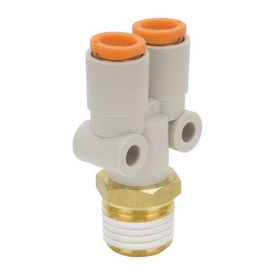 SMC KQ2U07-36AS PBT & Brass Push-to-Connect Tube Fitting with Sealant, Branch Wye, 1/4" Tube OD x 3/8" NPT Male