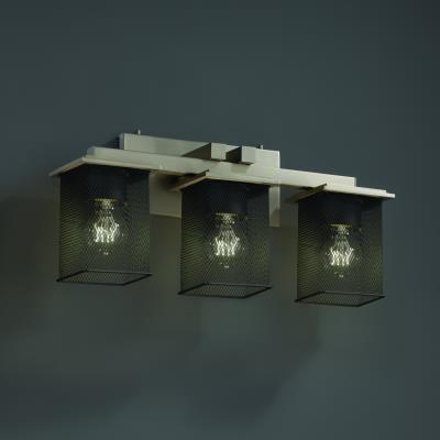 Justice Design Wire Mesh Montana 3-Light Brushed Nickel Bath Bar, Square - Flat Rim Shade - Silver - Brushed Nickel
