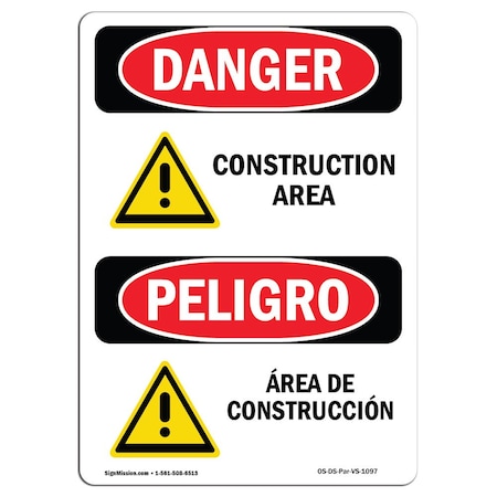 OSHA Danger Sign, Construction Area Bilingual, 7in X 5in Decal