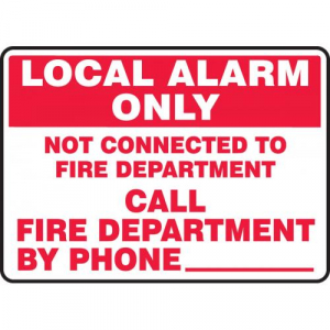 LOCAL ALARM ONLY NOT CONNECTED TO FIRE DEPARTMENT CALL FIRE DEPARTMENT BY PHONE ___ Sign - 10" x 14" Aluma-Lite?