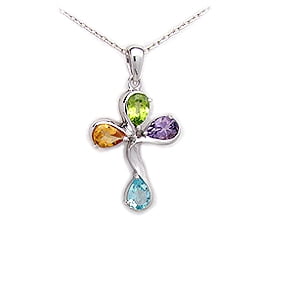 Garnet and Sterling Silver Cross Pendant with Peridot, Citrine, Amethyst and Sky Blue Topaz