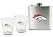 NFL Denver Broncos Shot Glasses & Brushed Stainless Steel Flask Set
