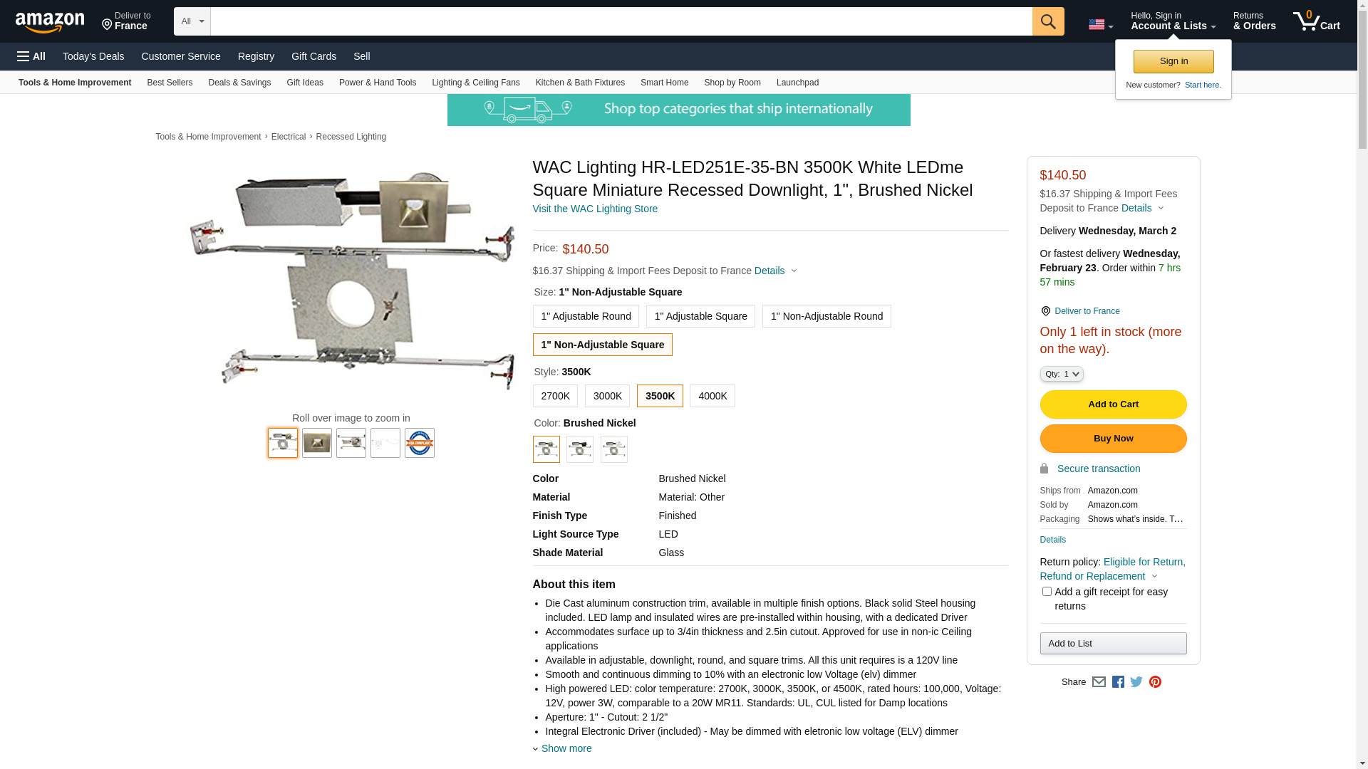 WAC Lighting HR-LED251E-35-BN 3500K White LEDme Square Miniature Recessed Downlight, 1", Brushed Nickel