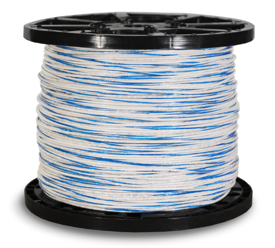 TFFN 16 AWG Stranded White w / Blue Stripe Copper Building Wire 2500 FT Reel Order by the foot - 2500 FT Minimum | Steiner Electric Company