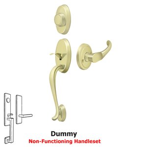 Dummy Set:Dummy handlesets have no latch or locking mechanism but give the appearance of a single cylinder handleset. Typically, dummy handlesets are used as a pull on the inactive side of a double door entry. Pair this with a single cylinder version to make a complete set for a full double door solution. This dummy set comes with both the exterior handleset and the interior. Features: Exceeds criteria for BHMA Grade 2 Security certification Constructed from brass for long lasting beauty and durability Installs in standard prep doors with door thickness of 1-3/8 Inch to 2 Inches Deltana includes a Limited 3 year and 1 year finish manufacturer warranty Specifications: Cross Bore: 2-1/8" Door Thickness: 1-3/8" to 2" Interior Projection: 2-3/8" Exterior Projection: 1-1/2" Lever Length: 4-1/2" Material: BrassProduct Variations: PRRHCH: Riversdale Keyed Entry Single Cylinder Handleset With Chapelton Lever PRRHDCH (This Model): Riversdale Dummy Set Handleset With Chapelton Lever