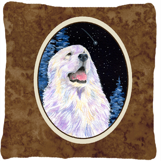 Carolines Treasures SS8466PW1414 Starry Night Great Pyrenees Indoor & Outdoor Decorative Fabric Pillow - 14 x 14 in.