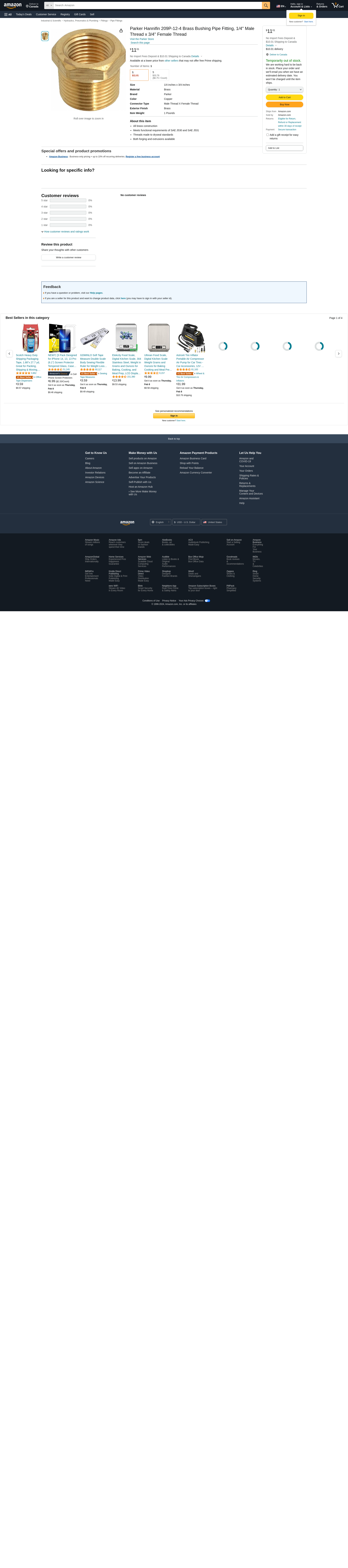 - Item|Hex Pipe Bushing#Brand|Parker#Model|209P-12-4#Size|3/4 Male Pipe X 1/4 Female Pipe#Type|Brass Pipe Adapter#Material|Brass#Max Pressure|1000 PSI