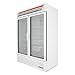True is the world's number one manufacturer of Glass Door Merchandisers. Designed for convenient access and fast service, the True GDM-49F-HC~TSL01 White Two Section Glass Door Freezer Merchandiser brilliantly displays packaged food and beverages. Ideally suited for both frozen foods and dessert, the unit boasts an extra-large evaporator coil to maintain -10 degreesF (-23.3 degreesC) cabinet temperatures. The entire cabinet structure and door are foamed-in-place using Ecomate. Ecomate is a high density polyurethane insulation that has zero ozone depletion potential (ODP) and zero global warming potential (GWP). The sides of the unit are a non-peel or chip white laminated vinyl that is both durable and permanent. The cabinet has an attractive NSF approved interior white aluminum liner, 300 series stainless steel floor, and covered corners. The (2) glass swing doors have a positive self-sealing close to provide a tight seal. There is a lifetime guarantee on the door hinges and torsion type closure system. The doors are made of energy efficient triple pane thermal insulated glass frames and are fitted with 12 inch long extruded handles, and removable one piece magnetic gaskets. Safety shielded LED interior lighting provides additional lighting throughout the 49 cubic feet cabinet. The (8) heavy duty PVC coated shelves are adjustable at half inch increments for your display needs. The bottom mounted compressor allows air to be drawn from the coolest part of the establishment. Bottom mount also provides a 'no-stoop' bottom shelf, storage on top of the cabinet and an easily accessible condenser coil for cleaning. 3/4 HP, 115/208-230v/60/1, 12.3 amps, NEMA 14-20P, 9' cord, UL EPH Classified, MADE IN USA, ENERGY STAR, 54.25 inch x 30 inch x 79 inch Ht